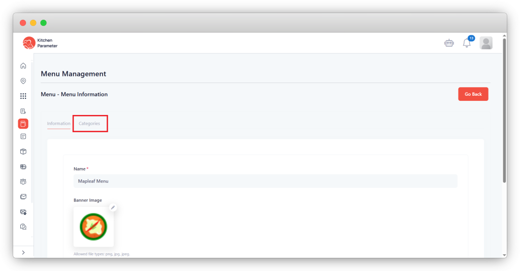 Step 4: Click on the Categories tab inside the menu
