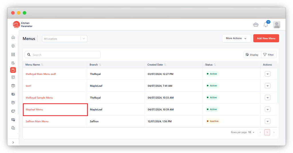 Step 3: Click on any menu name from the list of menus.