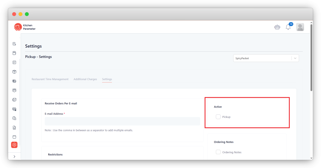 Step 6: Inside the settings, click on the “Pickup” checkbox inside the Active box.